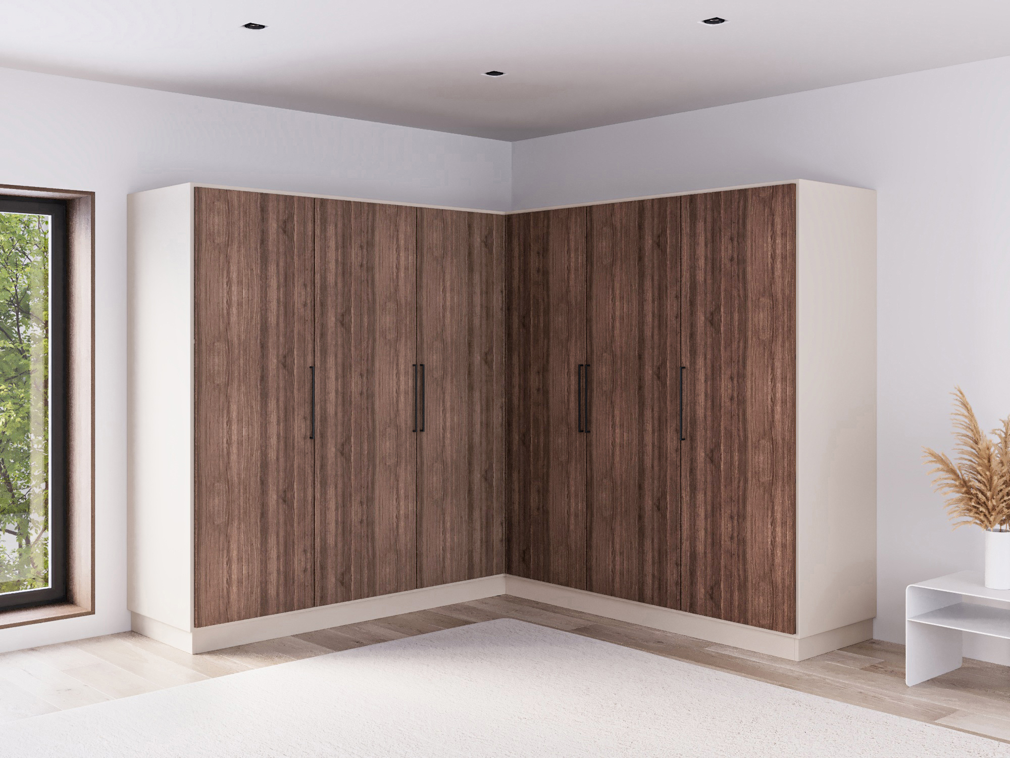 Klar, kantig, kompromisslos schön – Der Eckige bringt Struktur in jeden Raum. Mit seiner markanten Form und der natürlichen Ausstrahlung von Eiche Aviva Balm ist dieser Schrank ein echtes Statement für alle, die modernes Design mit zeitloser Wärme verbinden möchten. Hinter den stilvollen Fronten in warmem Holzdekor verbirgt sich ein großzügiges Innenleben, das sich mühelos an Ihre Bedürfnisse anpasst – ob mit Kleiderstange, verstellbaren Regalböden oder eleganten Massivholz-Schubladen.
