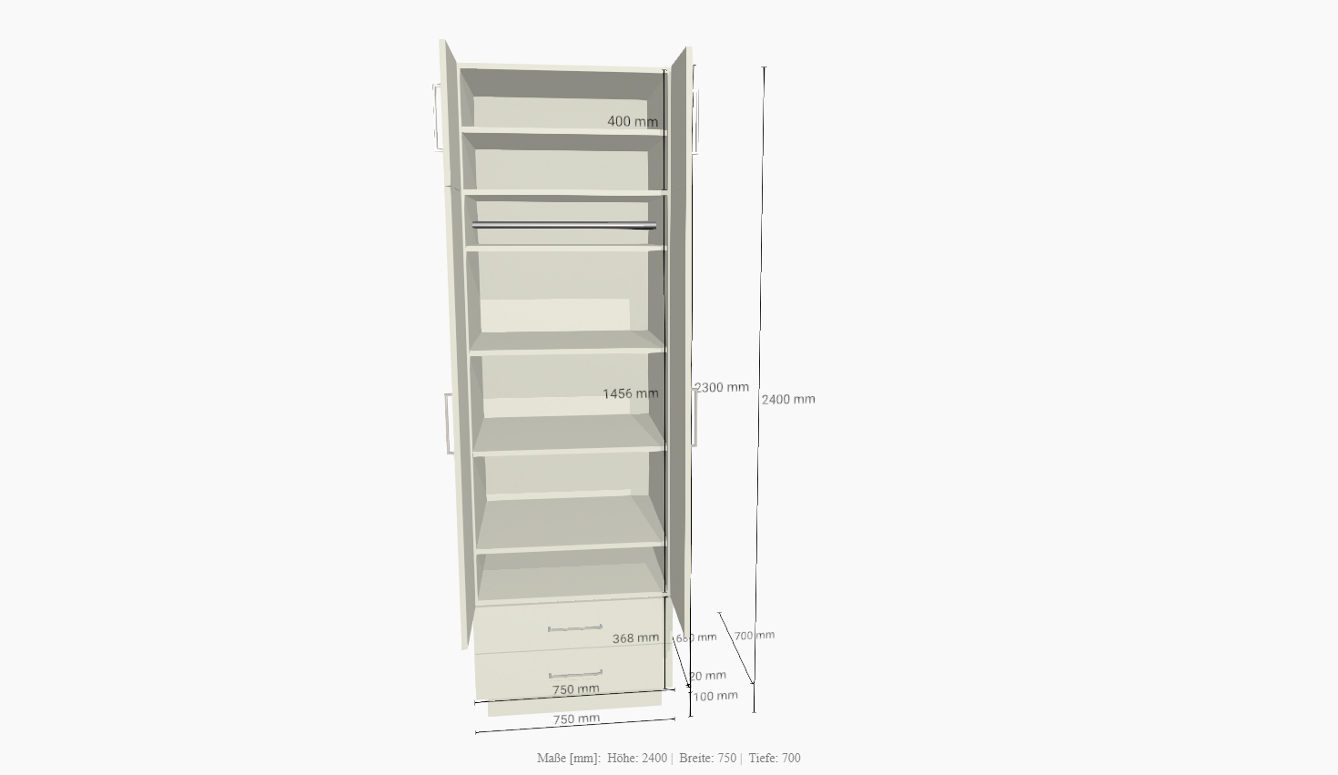 Höhe: 2400mm, Tiefe: 700mm, Breite: 750mm, Dekor: 1101 MN Weiss 19, Aktuelle Lieferzeiten siehe Auftragsbestätigung