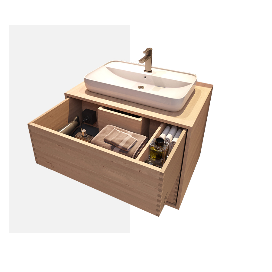 Wähle aus der Woodline Bad Linie designstarke Badmöbel aus. Unsere Badunterschränke gibt es in zwei Holzarten zur Auswahl. Alle Laden sind massive Holzschubladen in Tischlerqualität. Kombinieren Sie Ihre Badmöbel mit passenden Einzel- oder Doppelwaschtischen und Armaturen.